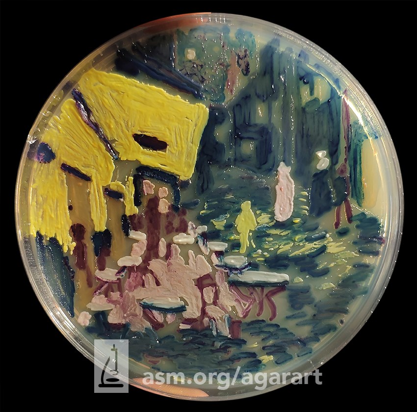 Behnam Farahani, Agar Art, Cafe Terrace at Night 2020 , Bacteria On agar, Peri Dish 10 cm, ASM Agar Art 2020